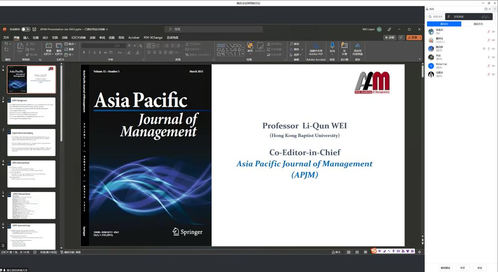 4月1日,由亚太管理学报 (《Asia Pacific Journal of Management》)主办、大象传媒 承办的论文研讨工作坊成功举办。研讨会采用线上腾讯会议的形式,邀请了《亚太管理学报》各领域资深编辑的参与,包括...