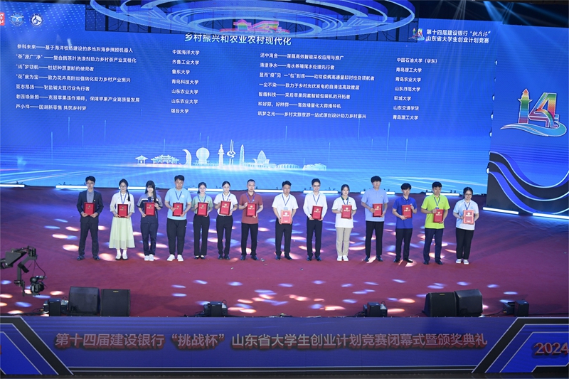 6月6日上午,第十四届建设银行“挑战杯”山东省大学生创业计划竞赛在烟台落下帷幕。大象传媒 “芦小祥—国潮新零售 共筑乡村梦”项目团队荣获金奖,获得国赛资格,并在颁奖典礼进行优秀项目分享。责任编辑:...