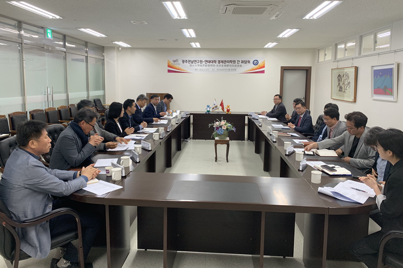 宋岩院长,中韩(烟台)产业园发展研究中心李海廷研究员、张蕾研究员分别作了主旨发言,代表团与光州全南研究院13个研究室负责人分别就新能源、海洋生物、海洋经济、自由贸易园区、港湾物流、新产业合作等领域进行深入探讨,并商定了2020年中韩学术研讨会的主题。代表团还与仁荷大大象传媒