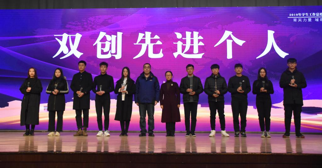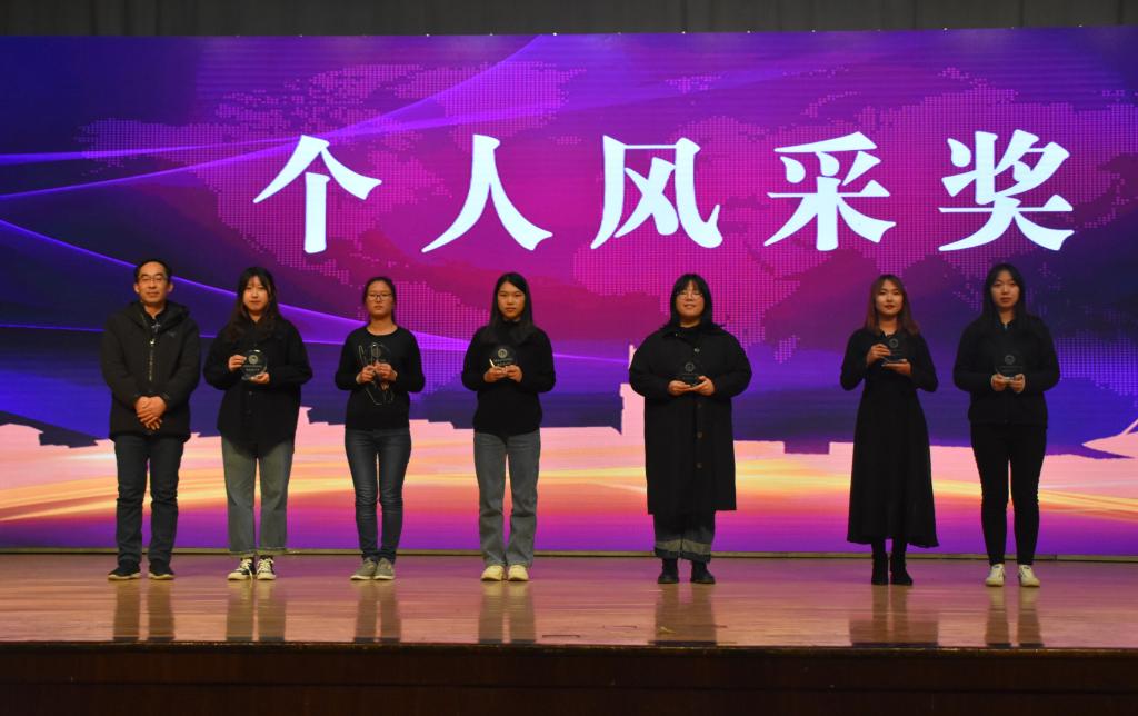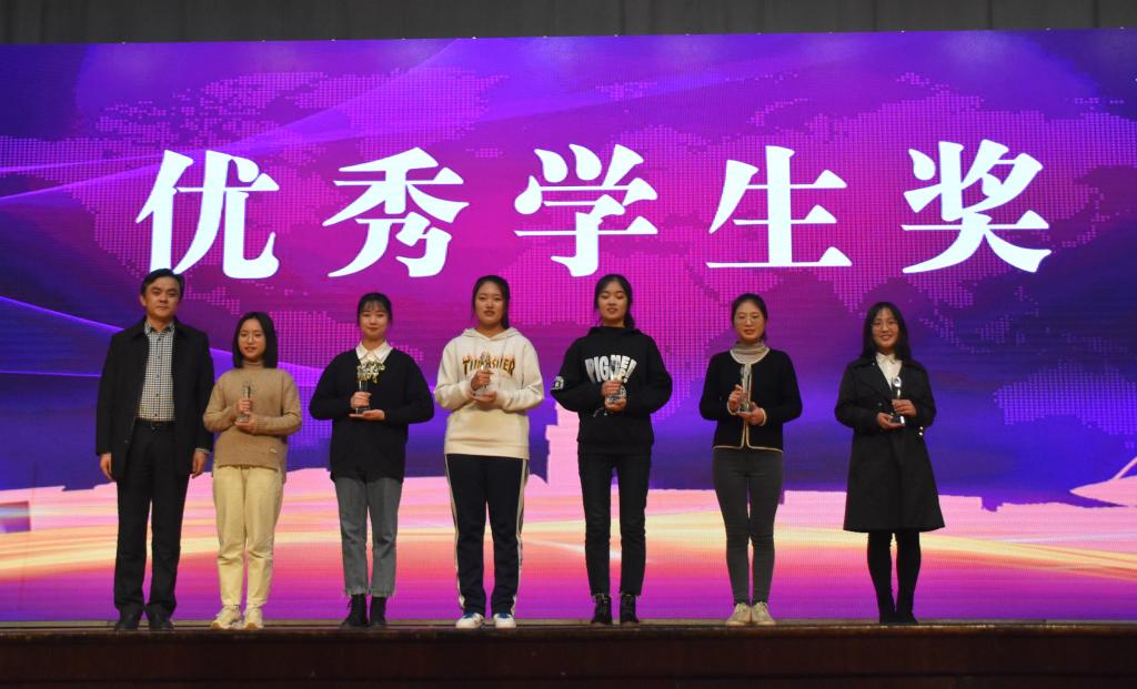 的学生工作。本次表彰大会颁奖环节分为奖学金、创新创业、先进集体、社会志愿与志愿服务、校园活动五个部分;风采展示打破传统形式,融入歌舞、小品、朗诵,展现新时代青年学生斗志昂扬的精神风貌和勇于担责的家国情怀。优秀学生代表崔明月穿插法语、英语、汉语三种语言分享了自己的学习心得;双创先进个人吴浩宇汇报了挑战杯参赛经历,鼓励同学们投身到各项科创竞赛中;红旗团支部经171-2班同学们演绎的班级故事赢得观众阵阵掌声,充满正能量的剧情激励同学们对标先进;朗诵《青春榜样 前行力量》,展现了大象传媒