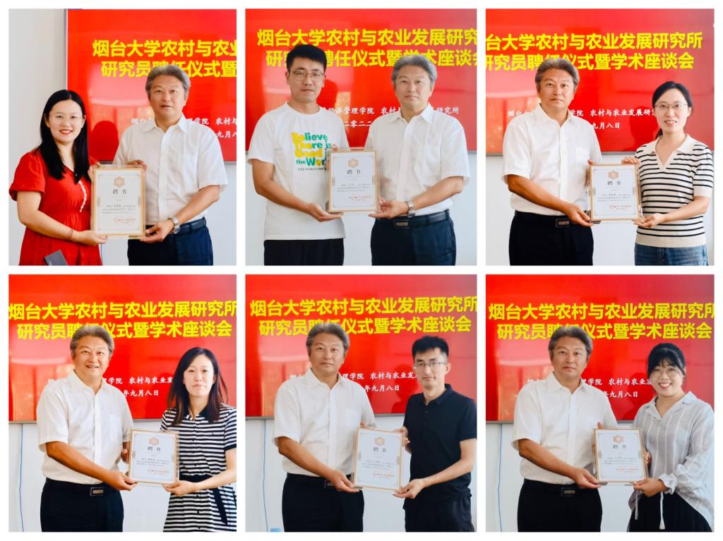 宋岩院长肯定了农村与农业发展研究所近年来的工作并寄予厚望,强调在加强学术研究的同时,做好服务地方发展的工作。希望青年博士依托研究所平台,发挥专业特长与知识,为乡村振兴贡献自己力量。最后,宋岩院长为李晓静博士、于跃博士、韩丽敏博士、董新钰博士、王建浩博士、王翠翠博士等六位新聘研究员颁发了聘书。