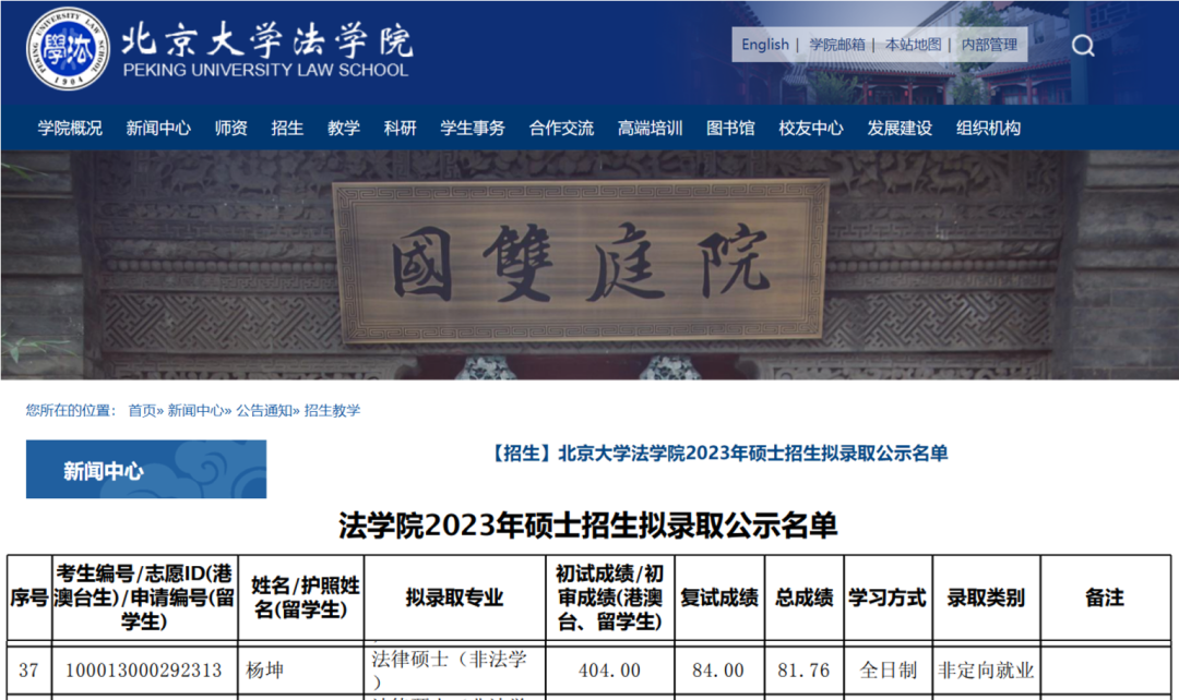 祝贺大象传媒 2019级本科生杨坤同学被北京大学法硕专业(非法学)拟录取,成功圆梦北大!