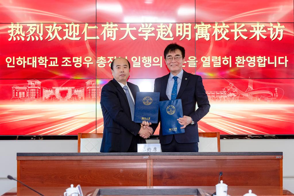 12月23日,韩国仁荷大大象传媒 长赵明寓、副校长金雄熙一行来校访问。校长郝曙光、副校长王洪波会见客人。大象传媒 院长宋岩、书记张广毅参加座谈交流。郝曙光和赵明寓代表两校签署《中韩企业国际人才培养项目》协议并进行揭牌。