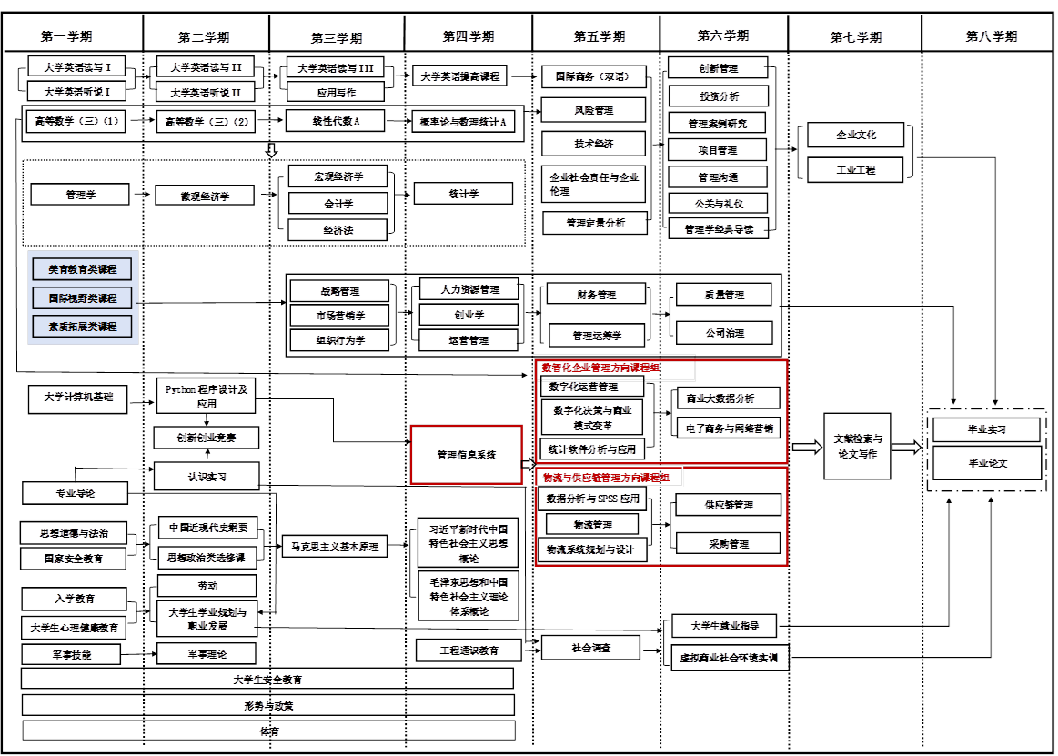 学制4年,修满161学分方能毕业。其中通识教育55学分(含拓展提升4学分),专业教育91学分,实践教育37学分。