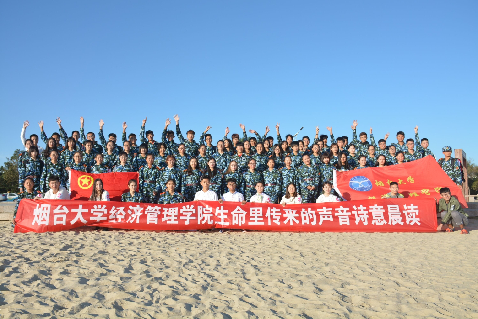 心语协会于9月23日在海边开展“大海颂,迎国庆”的新生朗诵活动。本次活动得到胶东在线等多方媒体的关注,荣获全国首届金话筒奖的一级播音员刘丽老师亲临现场指导同学们的朗诵。