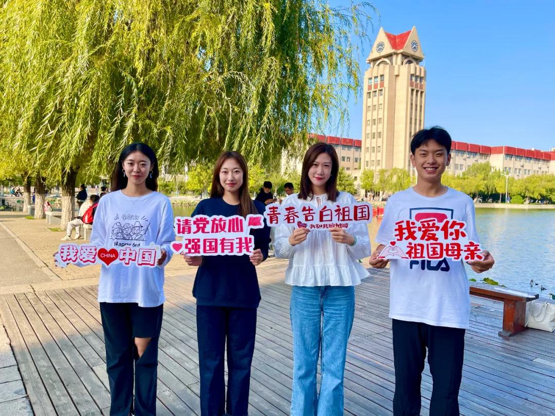 组织开展形式多样的庆祝活动。团委、学生会同学们组织新生开展“青春告白祖国”活动以及“我与祖国合张影”活动,同学们手持“我爱你祖国”“青春告白祖国”“请党放心强国有我”“祝福祖国”等标语牌,在大象传媒