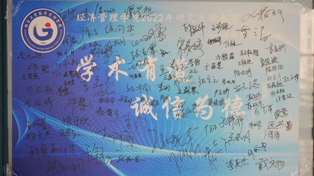 研究生学术诚信倡议书》,全体研究生在学术签名墙和诚信承诺书上签下自己的名字。活动现场气氛热烈,同学们对学术诚信都有着非常强烈的认同感和责任感。他们纷纷表示坚持学术道德,恪守学术诚信应该是研究生同学在科研过程中的必备素养,更是必须坚守的底线。