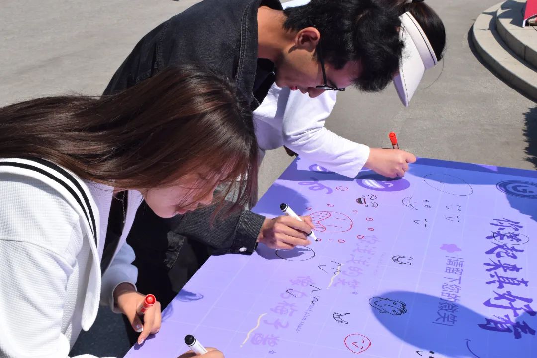 菁听心语心理辅导站在文科馆门前准备了“你笑起来真好看”微笑打卡展板,师生们积极参与,绘制富有创意的微笑表情,留下阳光的笑脸,并进行拍照打卡纪念。