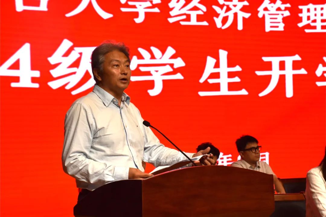 的办学历史、学科建设、师资力量、专业定位和优秀校友,并提出了三点希望:一是胸怀天下,心系家国,希望同学们把奋进的脚步融入国家现代化建设的时代潮流、融入民族复兴的伟大征程;二是要立足前沿,关注现实,希望同学们站在前沿学科、解决中国实际问题,为中国特色社会主义现代化国家建设服务;三是勤奋刻苦,追求卓越,希望同学们拓展学术视野、培养专业技能,为就业打下坚实基础。