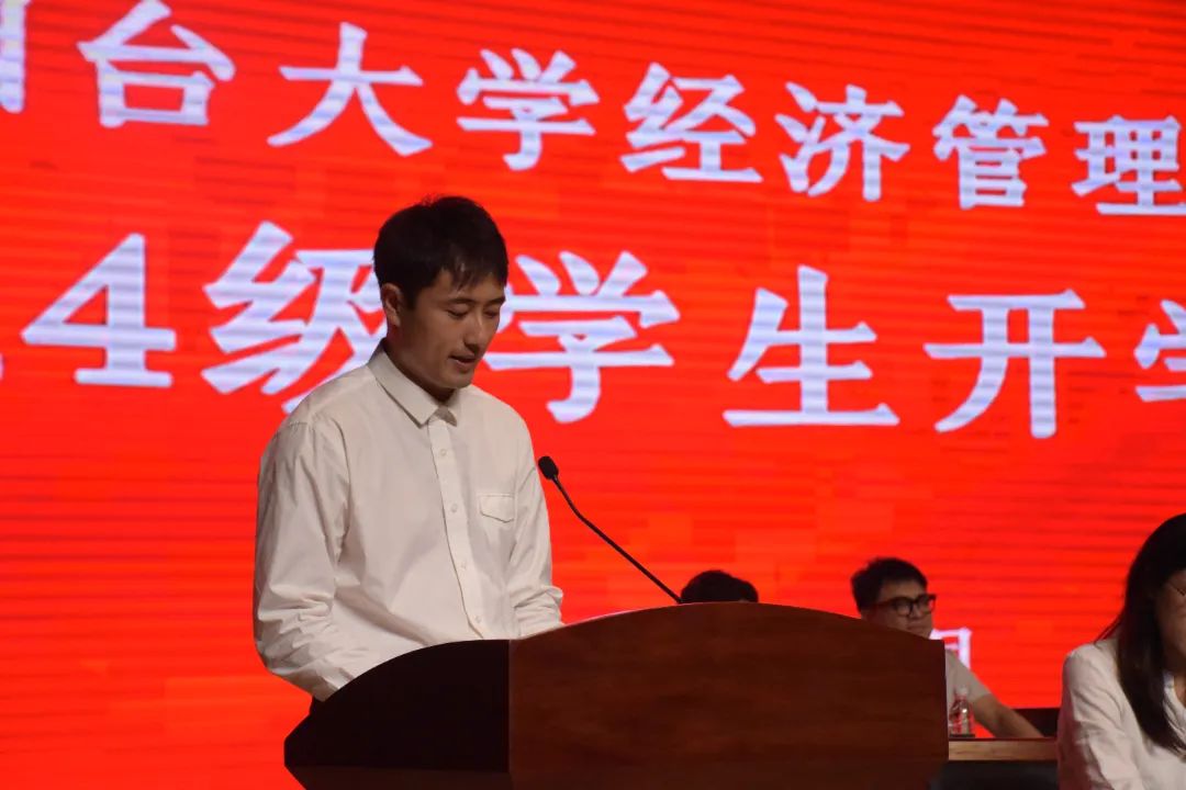 经管为起点,做好规划,在实践中学习,结交新朋友、体验新事物。研究生新生代表徐庆是一名退伍军人,表示在人生旅途的新起点上,将不忘初心、坚定信心,求真学问,准备迎接新挑战。本科生新生代表郭富成跨越两千多公里来到大象传媒