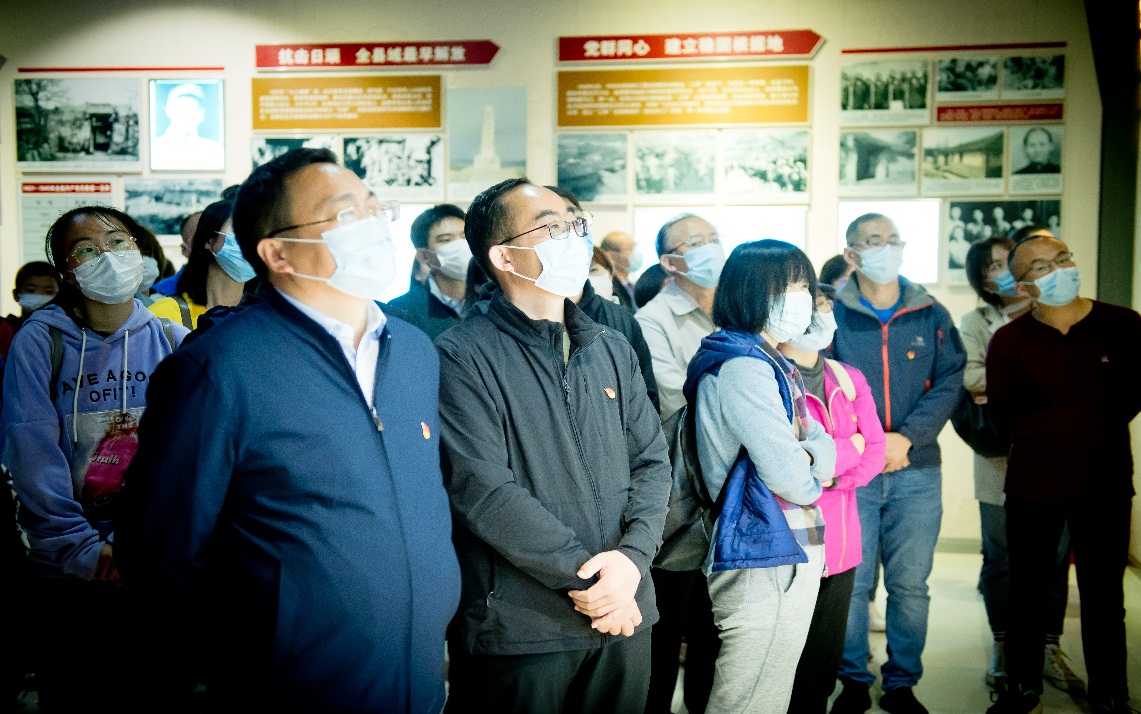乳山是革命老区之一,英雄的乳山儿女为民族的独立和人民的解放事业作出了巨大贡献。马石山十勇士,为解救被围困在马石山上的群众,“四进三出”日军包围圈,救出上千名群众,自己却壮烈牺牲在马石山上,在抗战史上写下了浓墨重彩的篇章;胶东育儿所300多名乳娘和保育员养育了1223名革命后代,胶东乳娘用超越传统的血脉亲情,用超越本能的母爱让革命的火种生生不息,让革命的力量不断壮大,集中展现着忠心向党、大爱无疆的乳娘精神,生动诠释着胶东人民以命相助跟党走的坚定信念。这种不畏强暴的勇气和抗战到底的决心感动了在场的全体党员。在讲解员的讲解中,党员们深入学习了胶东党史、革命史。随后,全体党员向革命烈士敬献礼花,致敬革命先辈。