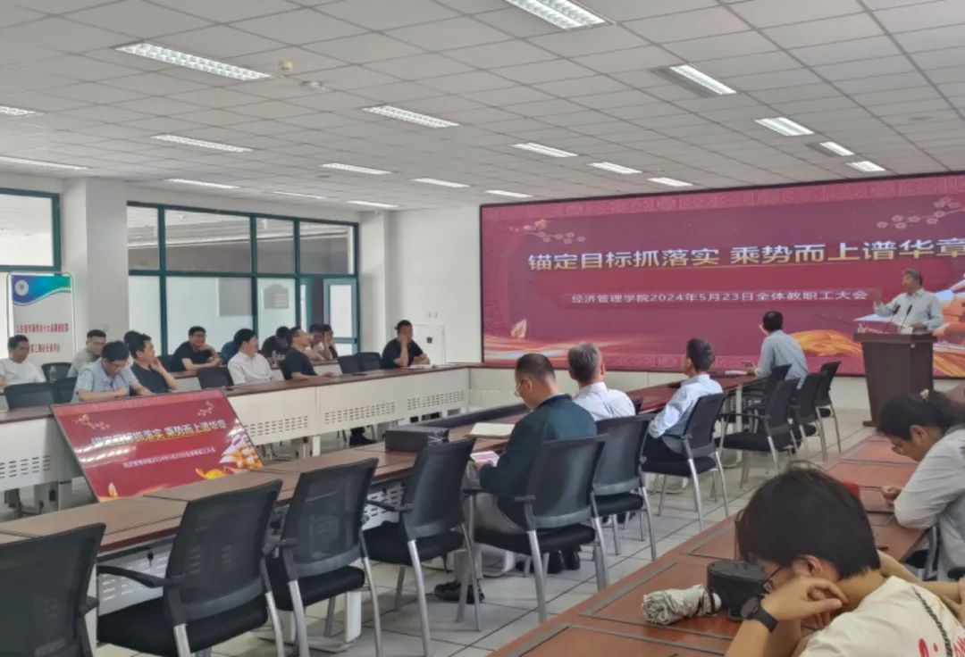 在综合楼307举办全院大会,会议由院党总支书记张广毅主持,全体教职工参加。
