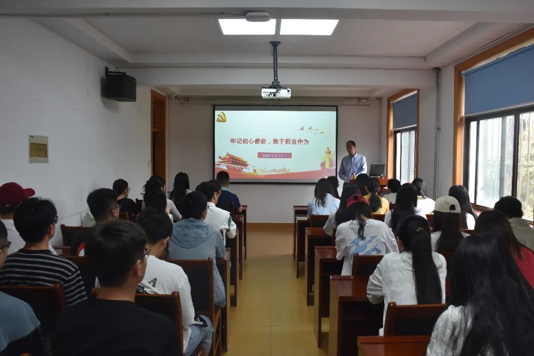 党总支书记张广毅以《牢记初心使命,敢于担当作为》为题为2024届毕业生党员上了最后一堂生动的党课。对青年党员提出了希望要求,送上真挚祝福。