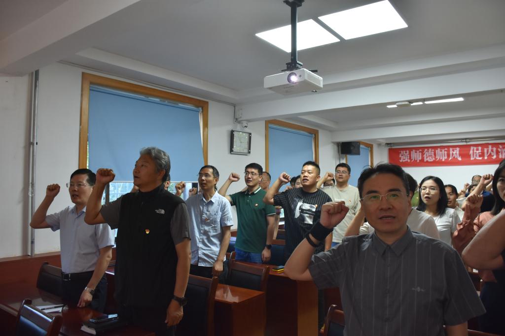 活动伊始,在张广毅的带领下,全体党员面向党旗,昂首挺胸,高举右拳,重温入党誓词。